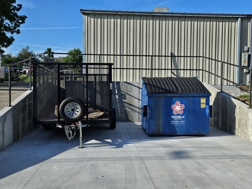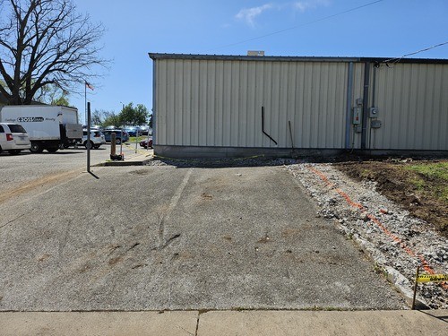 While it isn't part of the actual groundbreaking, we had to move the dumpster and cut down a couple of trees.